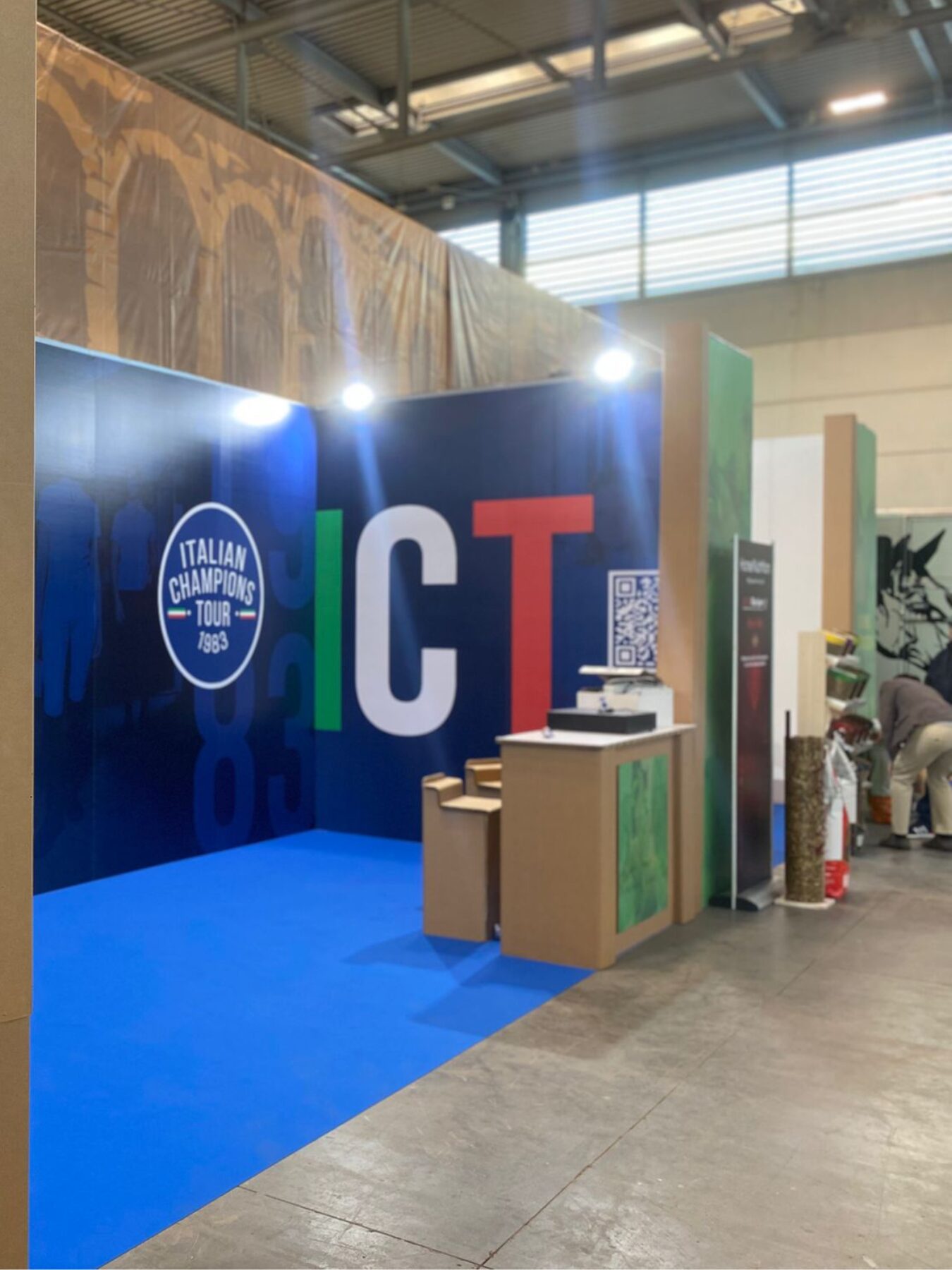 In occasione della Fiera Cavalli Verona 2025 abbiamo realizzato un allestimento su misura per la Federazione Italiana Sport Equestri, trasformando lo spazio espositivo in un racconto visivo capace di unire design sostenibile, funzionalità e identità di brand. Il progetto nasce dall’incontro tra l’eleganza del mondo equestre e la versatilità del cartone riciclabile, un materiale leggero, resistente e a basso impatto ambientale, ideale per fiere ed eventi contemporanei.Ogni elemento è stato studiato per valorizzare l’esperienza del pubblico, comunicare i valori della Federazione e offrire una presenza scenica distintiva, senza rinunciare alla sostenibilità.